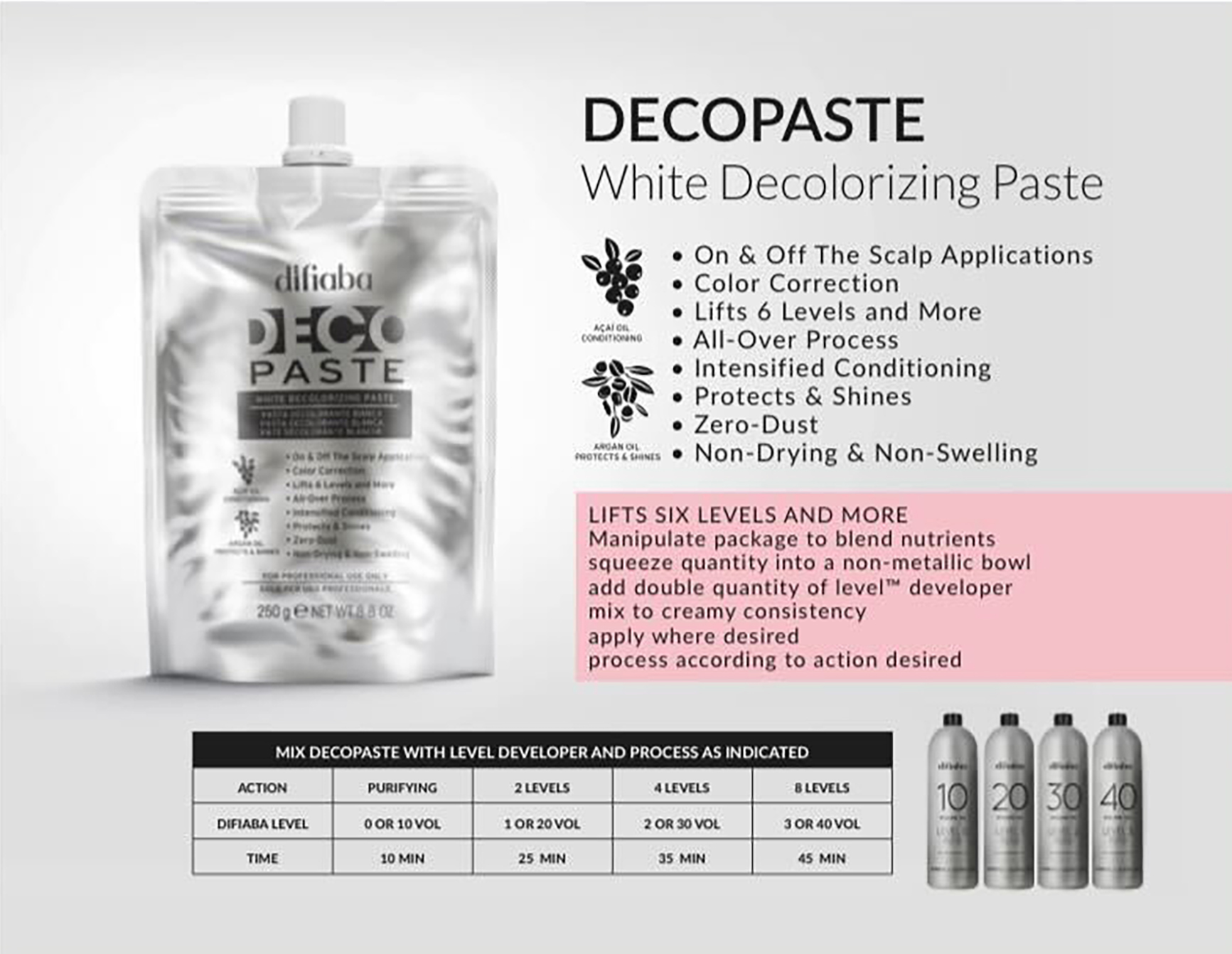 Our most versatile lightener for controlled and reliable lightening with up to 6 levels of lift can be used to detail, highlight, or go all-over blonde. Designed especially for freehand and balayage techniques, this kaolin paste-based formula produces an ultra-creamy, thick consistency that helps maximize even application and control, without overlapping previous color applications. Creating a single cast around the hair to encapsulate moisture, color-protective paste lightener with up to 6 levels of lift for freehand, balayage, ombre’ techniques, and -On and -Off scalp applications. White in color to help see-through the lifting progress and deliver accurate blonde results.